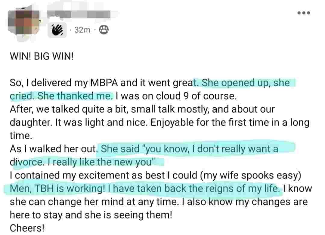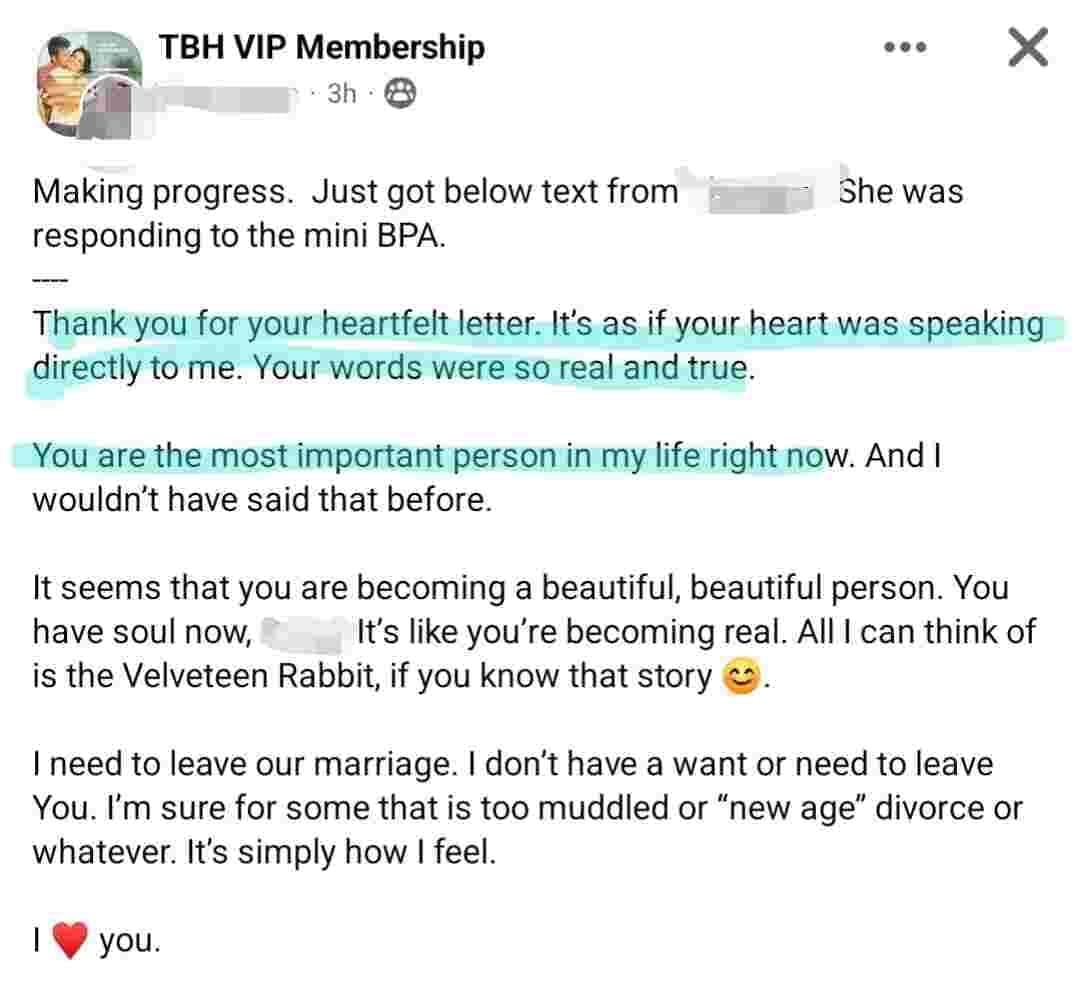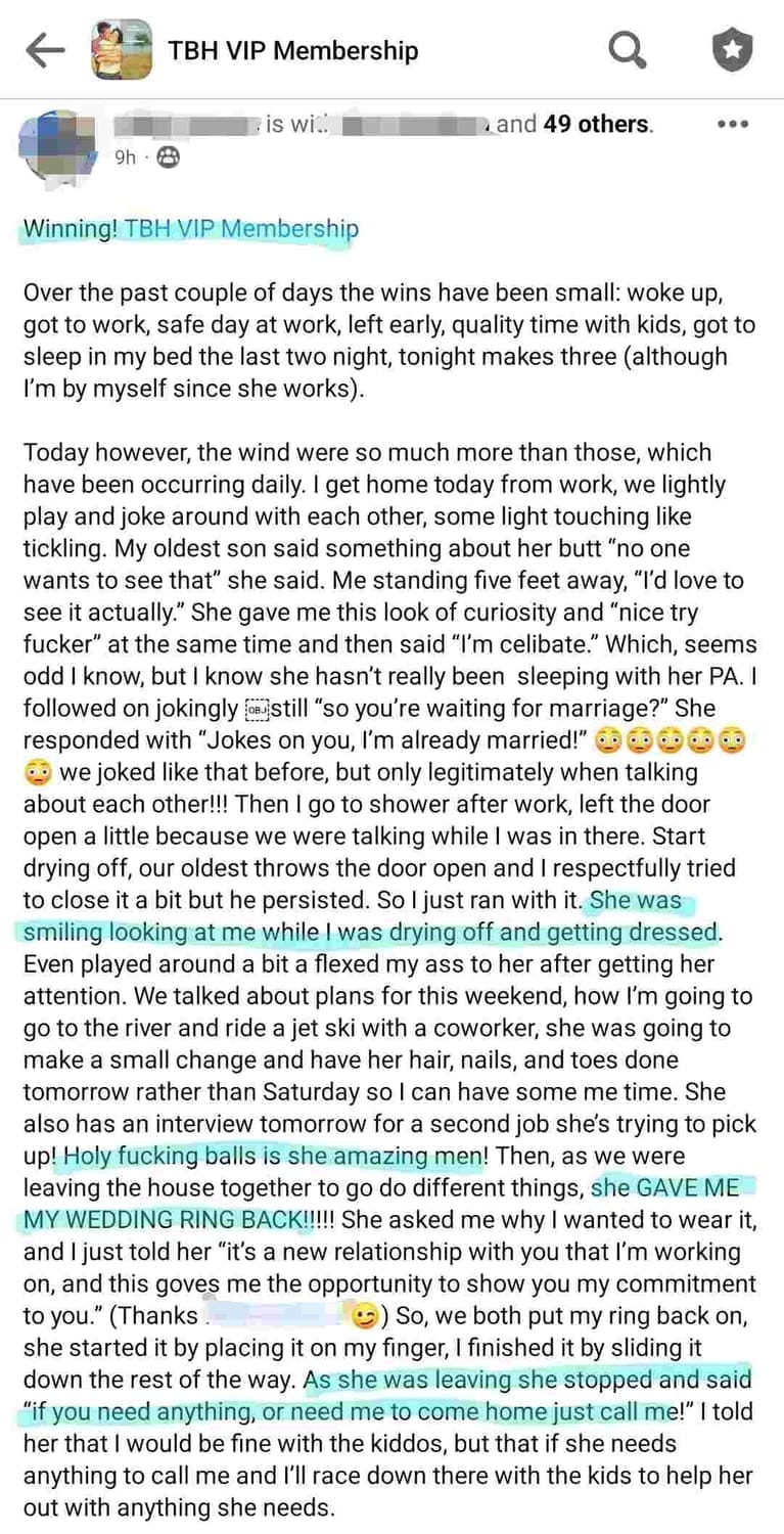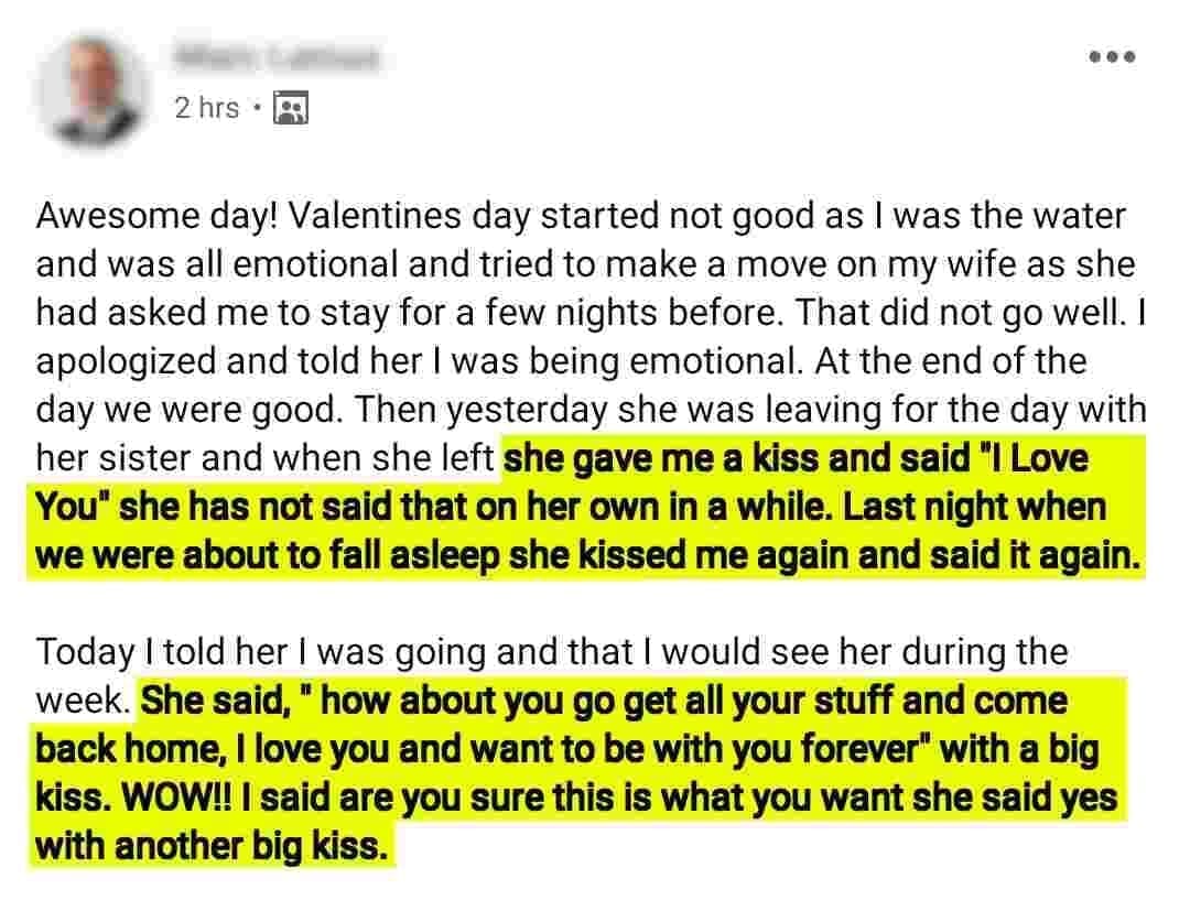 FROM WIFE BEING TOTALLY CHECKED OUT OF THE MARRIAGE TO...