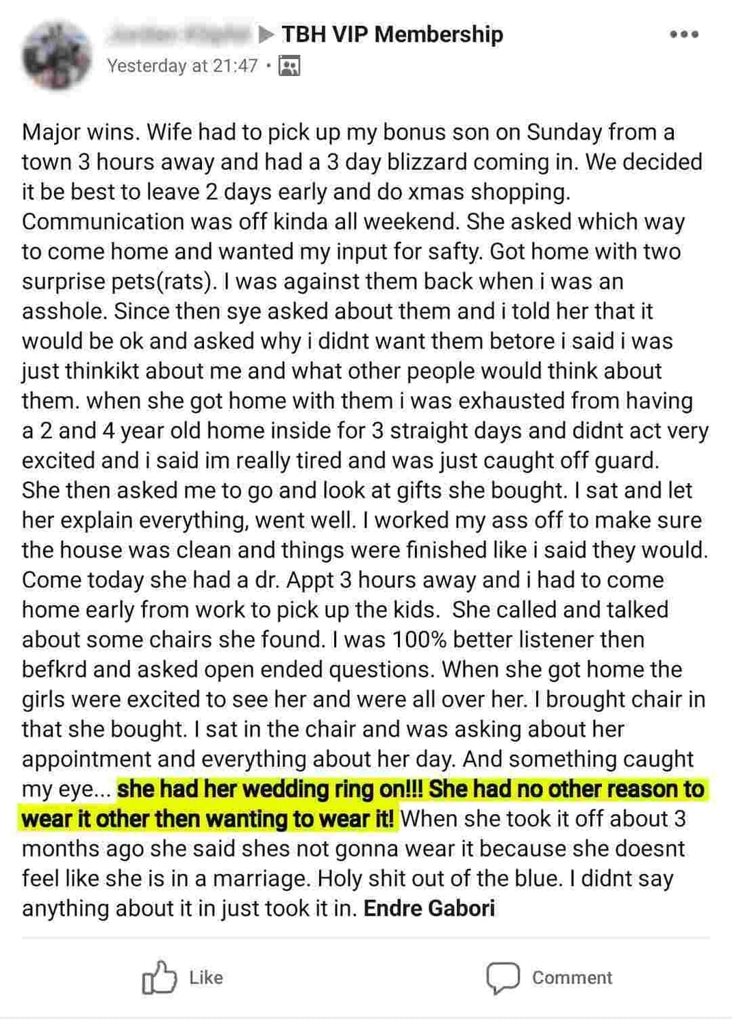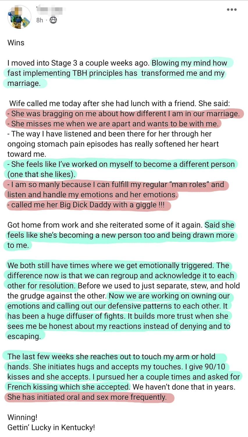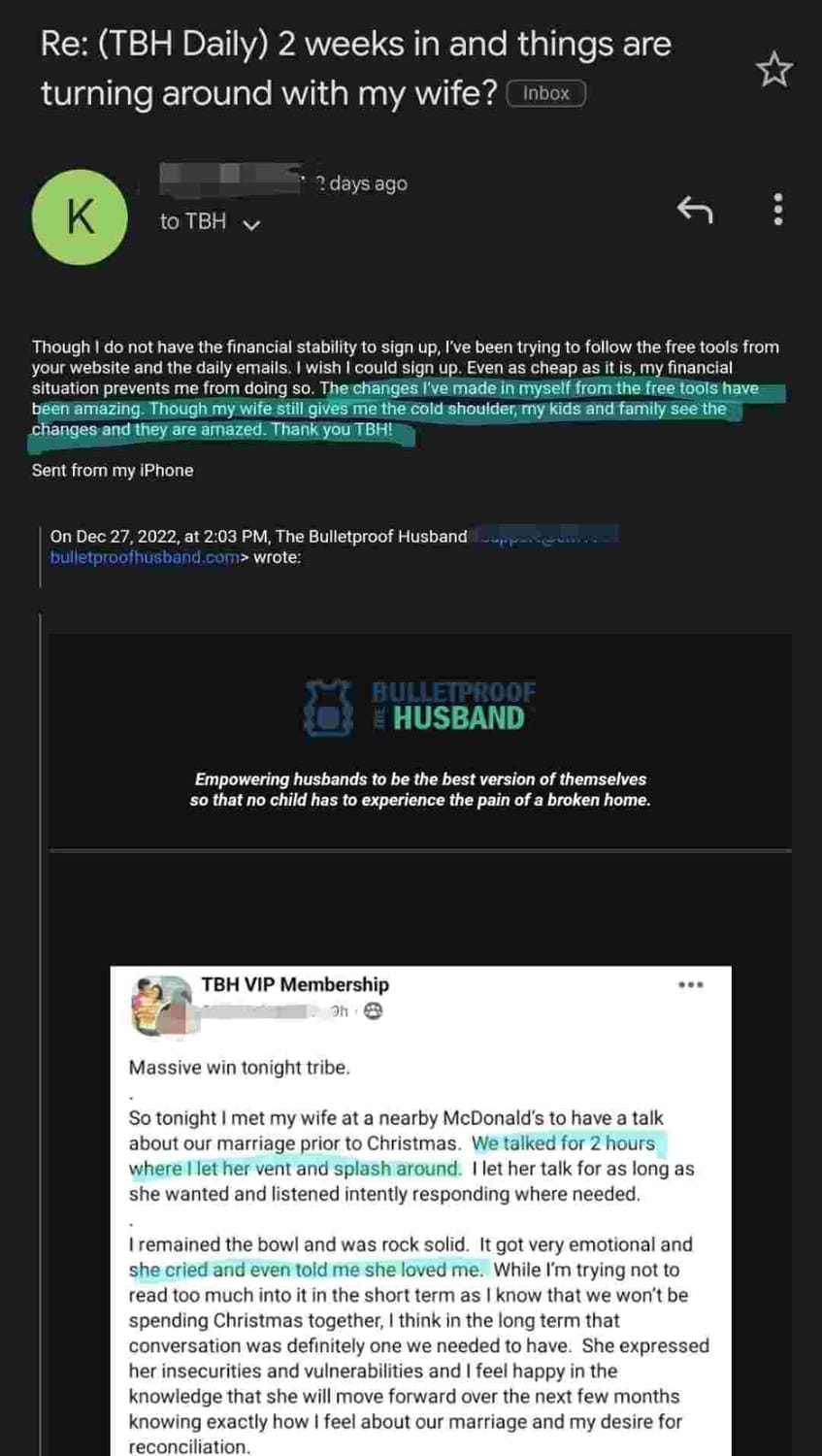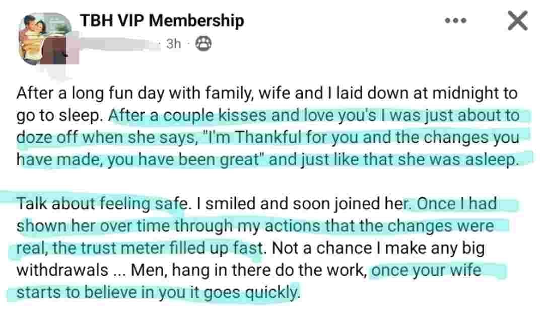 FROM WIFE BEING TOTALLY CHECKED OUT OF THE MARRIAGE TO...